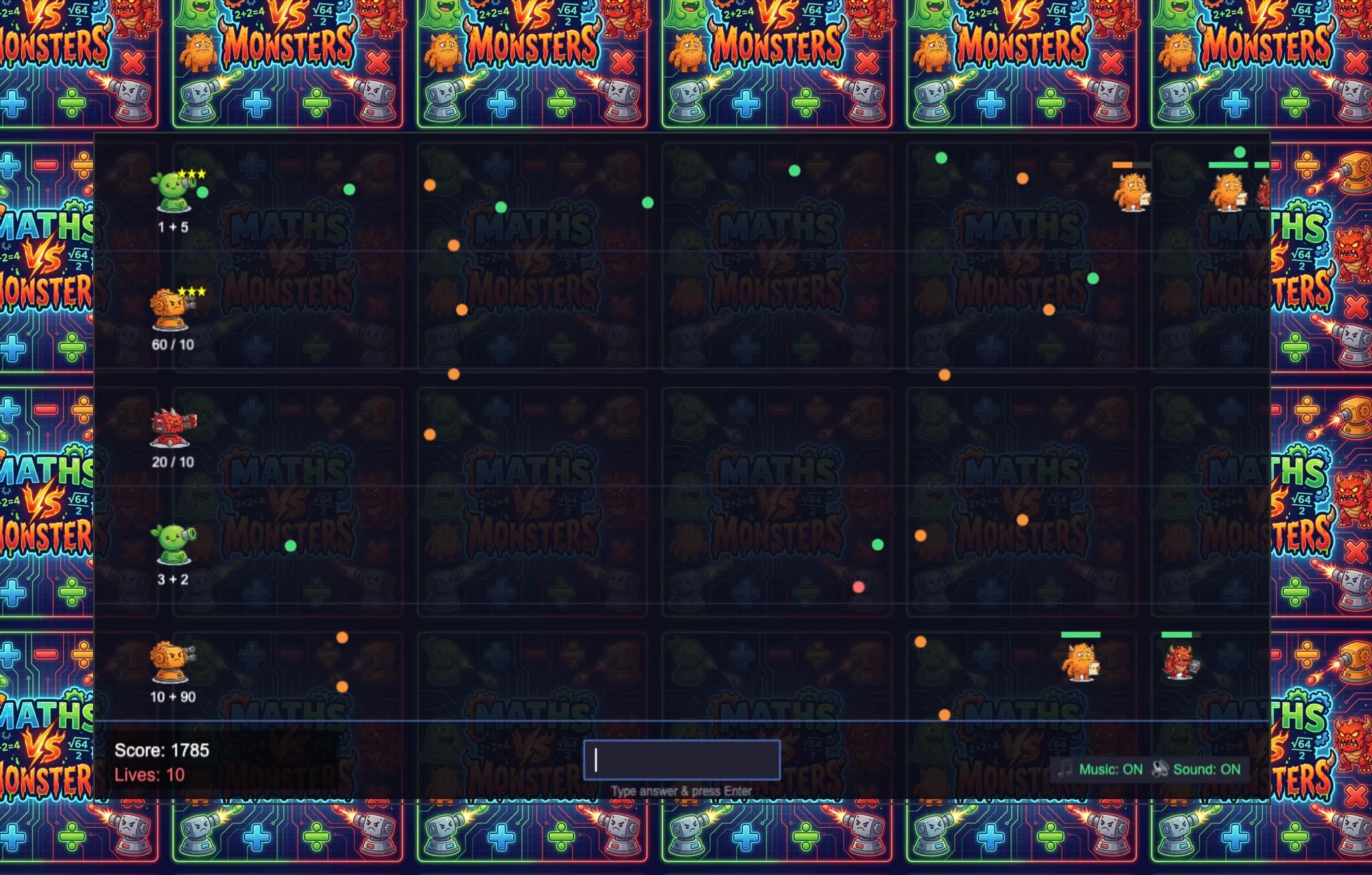 Maths vs Monsters is a tower defence game. The core mechanic is that you have to answer maths questions to upgrade turrets.